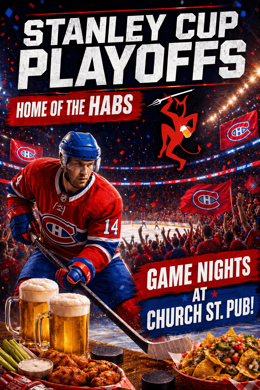 $15 – Wings in-house | $20 – Pitcher of Canadian or Moosehead
